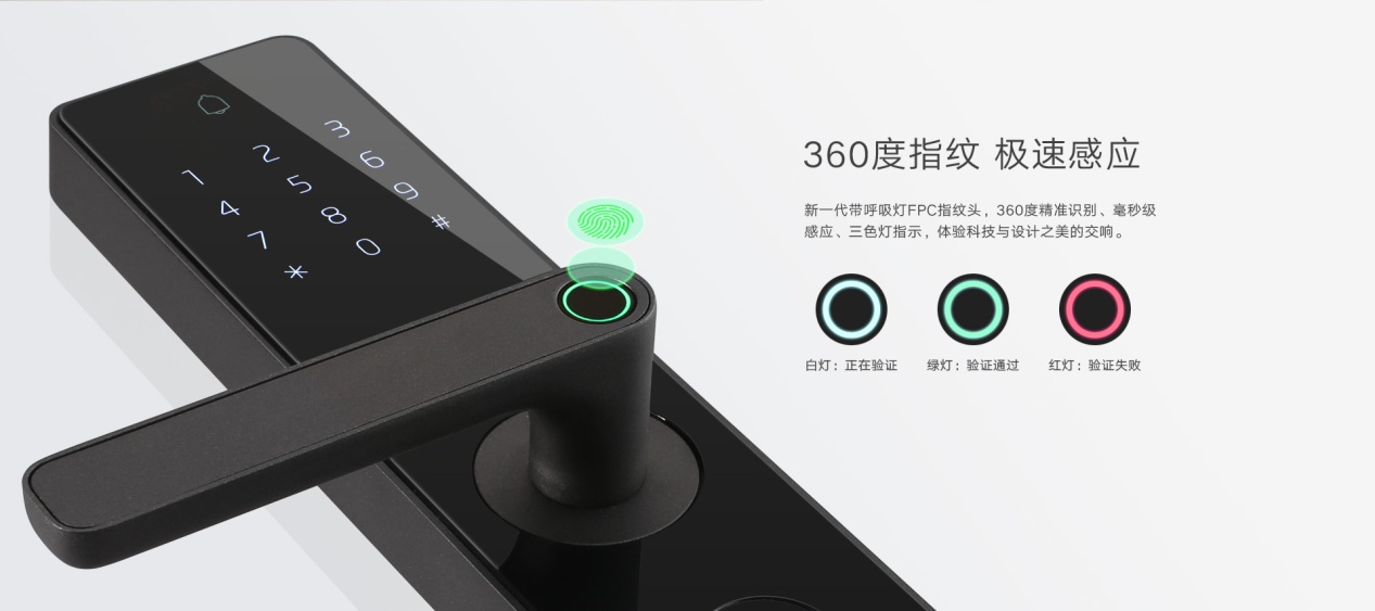 与此同时,配置交互式白、绿、红三色指示灯,即使在黑夜指纹识别结果也一目了然,科技与设计之美的交响。
