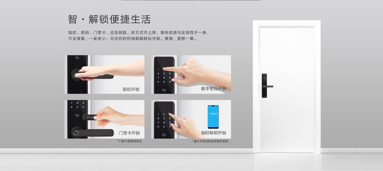 科技的进步是为了改变生活,让我们的生活变得更为舒心。华为智选智能指纹锁拥有指纹、密码、感应卡和应急机械钥匙开锁四种方式,出门不用带钥匙,就是这么任性。