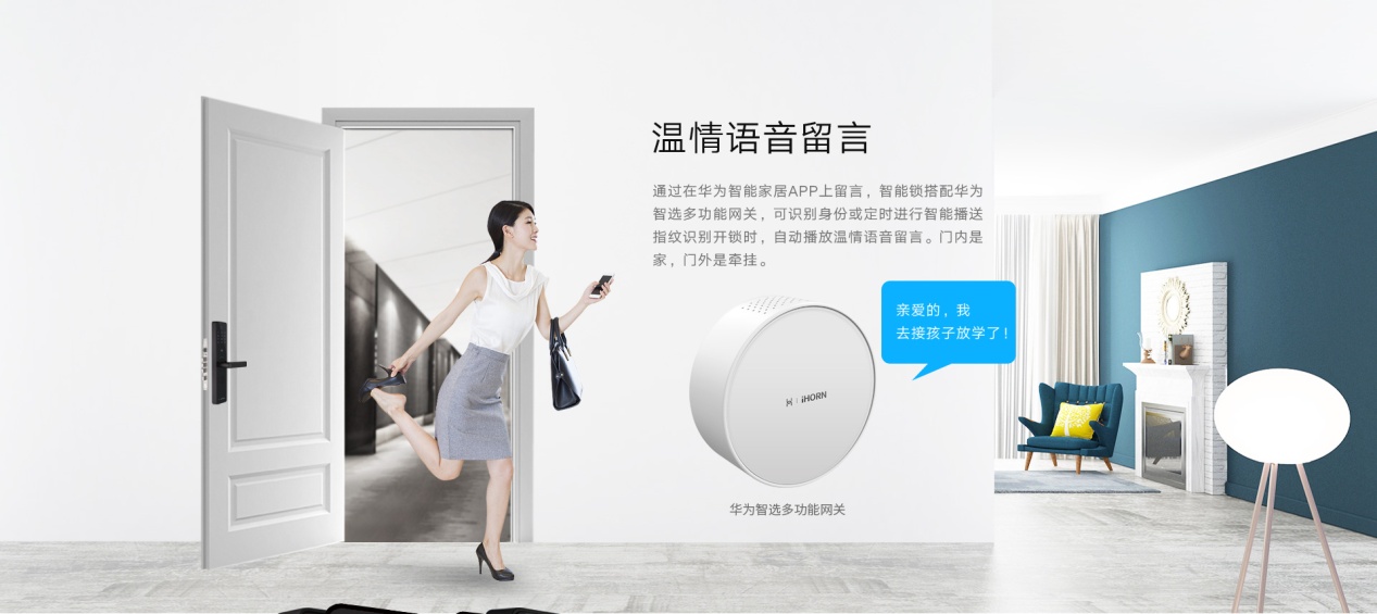 为了给家人更好的生活,我们投入更多的时间到工作中,陪伴家人的时间越来越少。为此,华为智选智能指纹锁推出温情语音留言功能,配合华为智能网关即可使用。“昨晚冰箱买了酸奶,这两天要及时喝哦”、“昨晚我听见你咳嗽,吃完饭记得吃药”、“爸妈,感恩节快乐~爱你们哟”……生活琐事温馨提醒,节日温情祝福。即使我们和家人的工作休息时间有时差,“陪伴”也不会少。