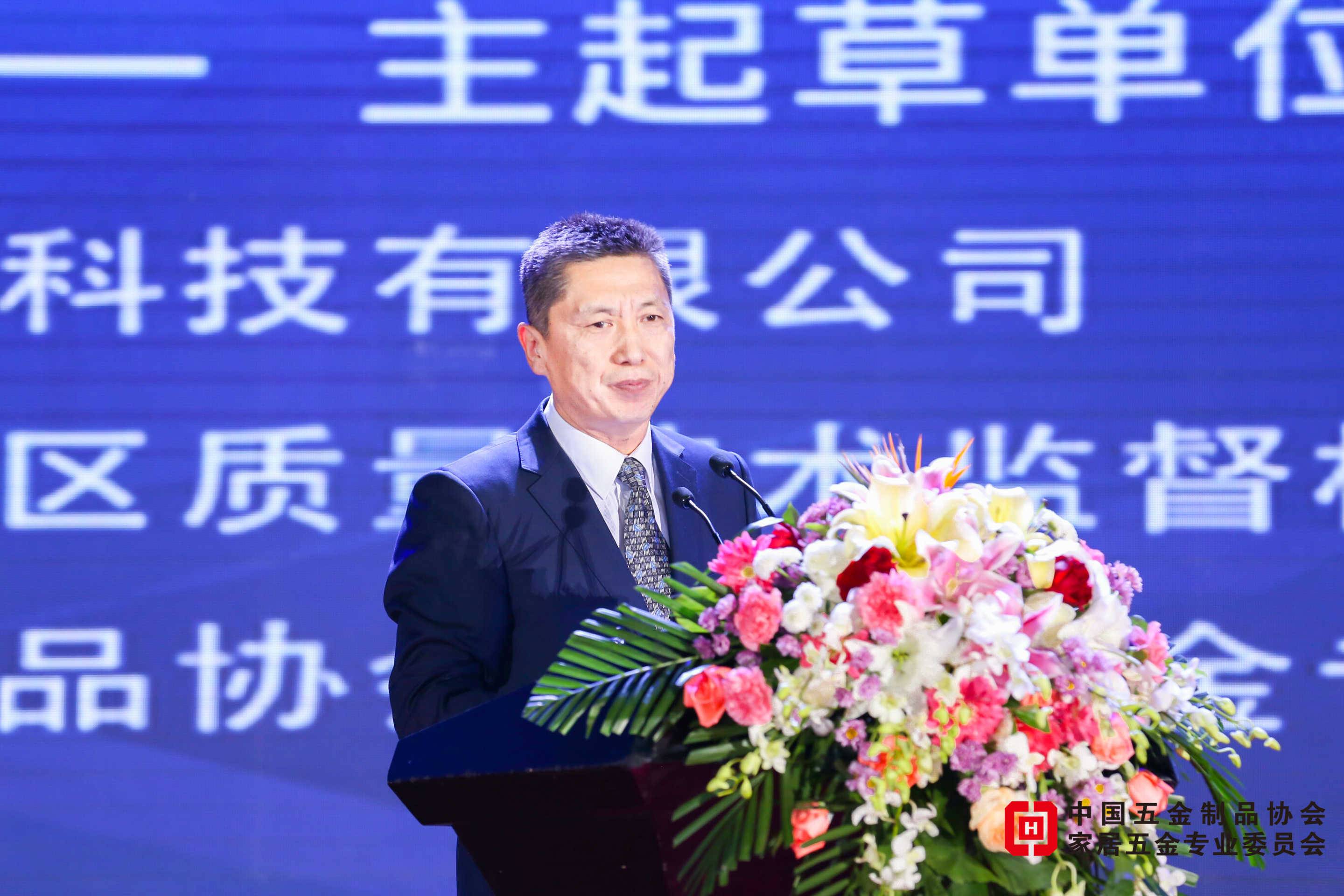 ▲中国五金制品协会副理事长柳润峰先生主持《智能云锁的功能要求》团体标准新闻发布会