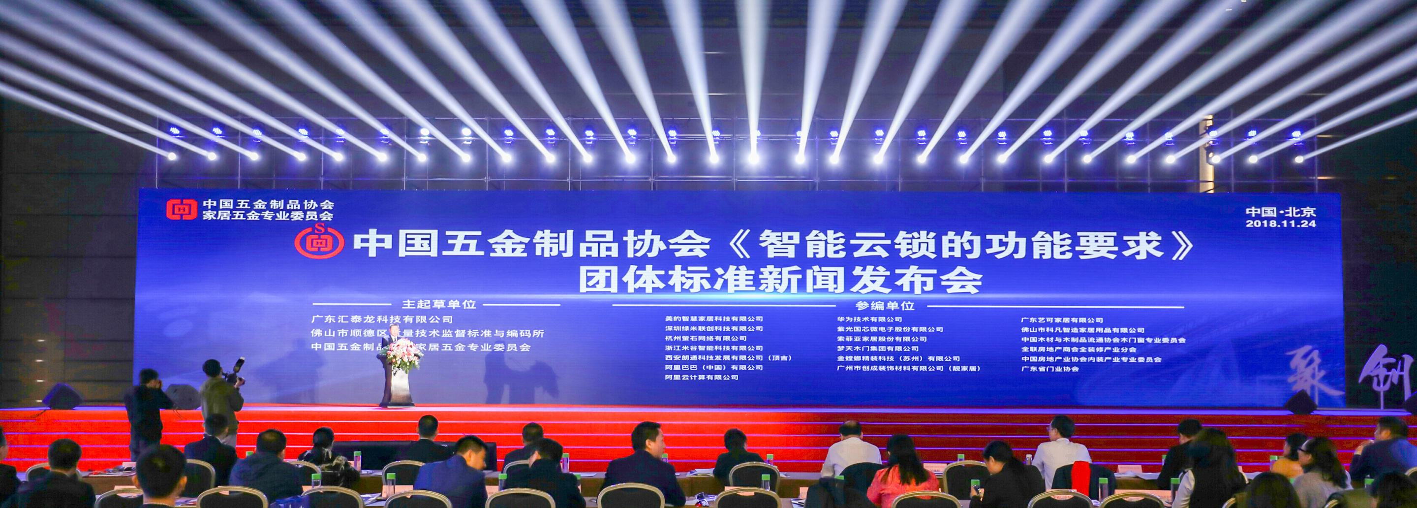 2018年11月23—24日,中国五金制品协会家居五金专业委员会成立大会在北京国家会议中心举行。会上,召开了《智能云锁的功能要求》团体标准新闻发布会。