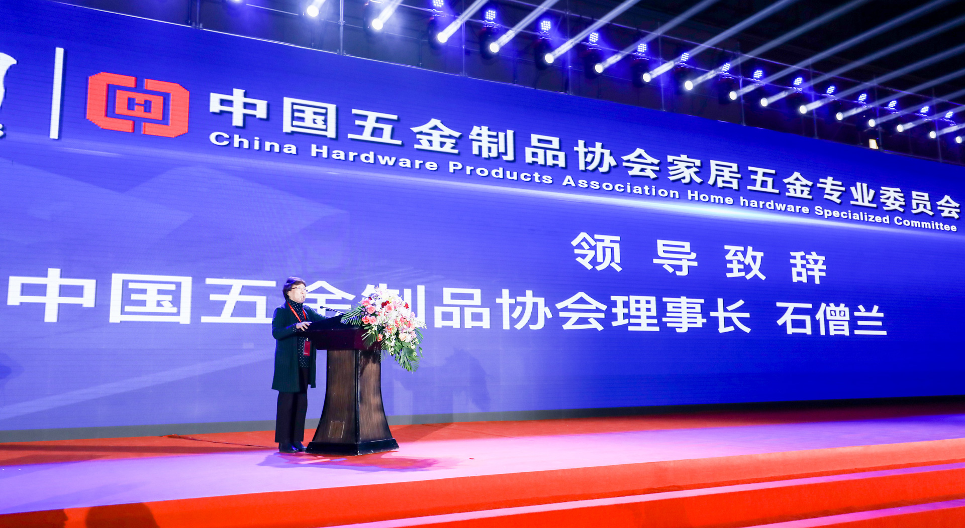 ▲中国五金制品协会理事长石僧兰女士上台作总结性讲话