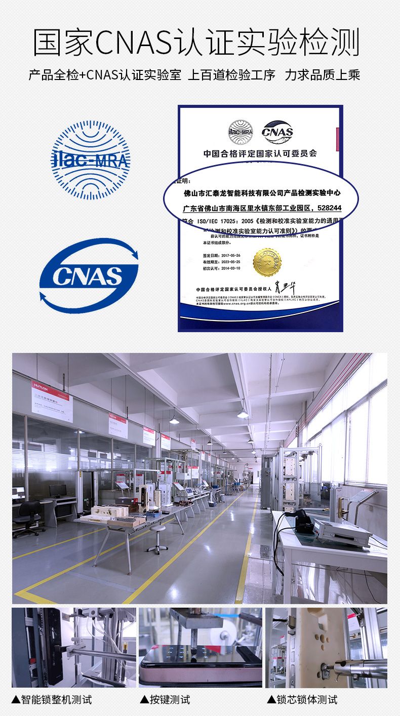 汇泰龙力求产品品质上乘,建立产品试验检测中心,并取得国家实验室认可(CNAS),采用“产品全检+CNAS认证实验室”方式,每款产品都经过上百道检验工序严格检测。