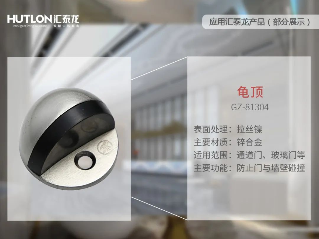 在公共场所定门方面,江苏省国际人才公寓选用汇泰龙龟顶,用以固定通道门、玻璃门等,防止门与墙壁碰撞。
