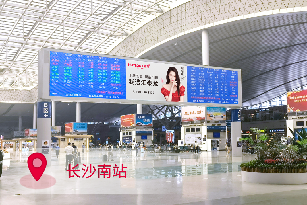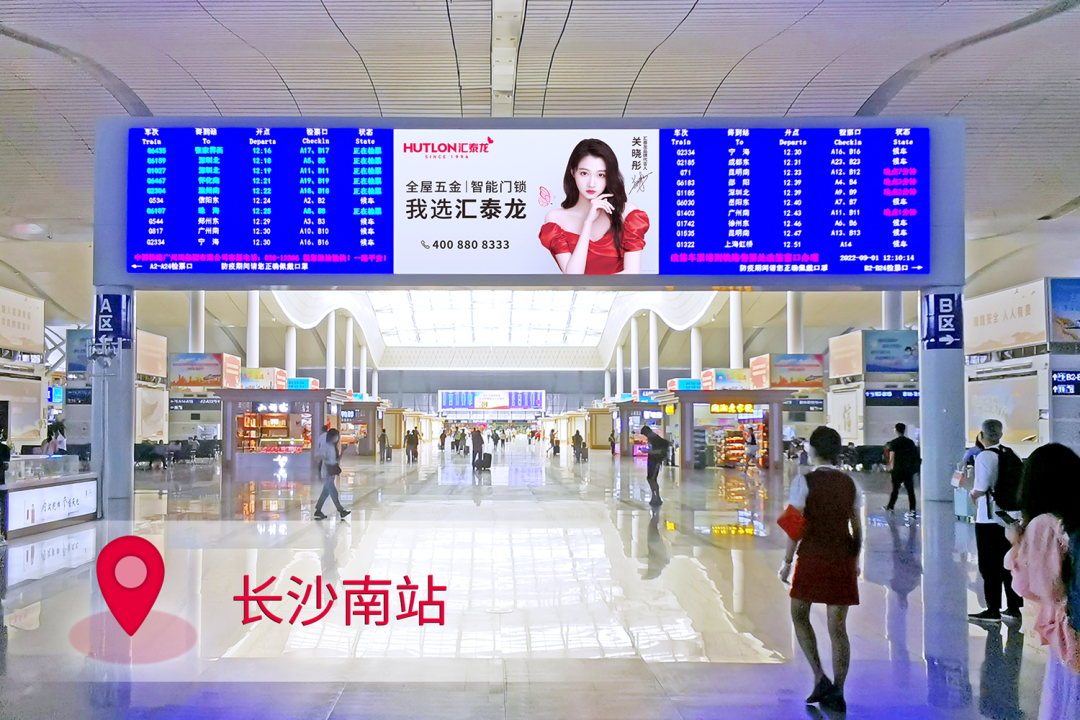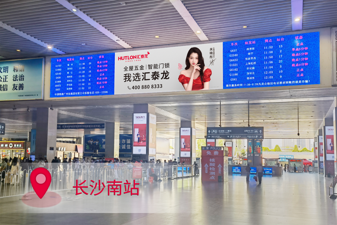 在站台,作为“第一眼印象媒体”和乘客上下车必看媒体,外车身贴汇聚了站内旅客极大的关注度。汇泰龙冠名高铁列车,整车8节车厢两侧,均印有汇泰龙logo+“全屋五金丨智能门锁”,沿途城市皆可展现,高效传达品牌形象,强化记忆。