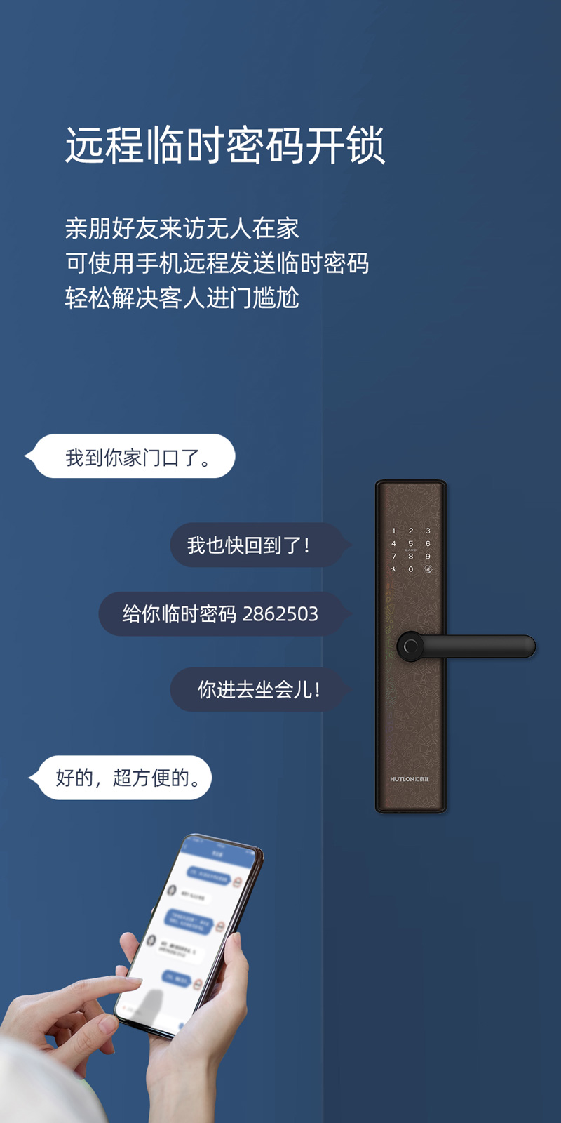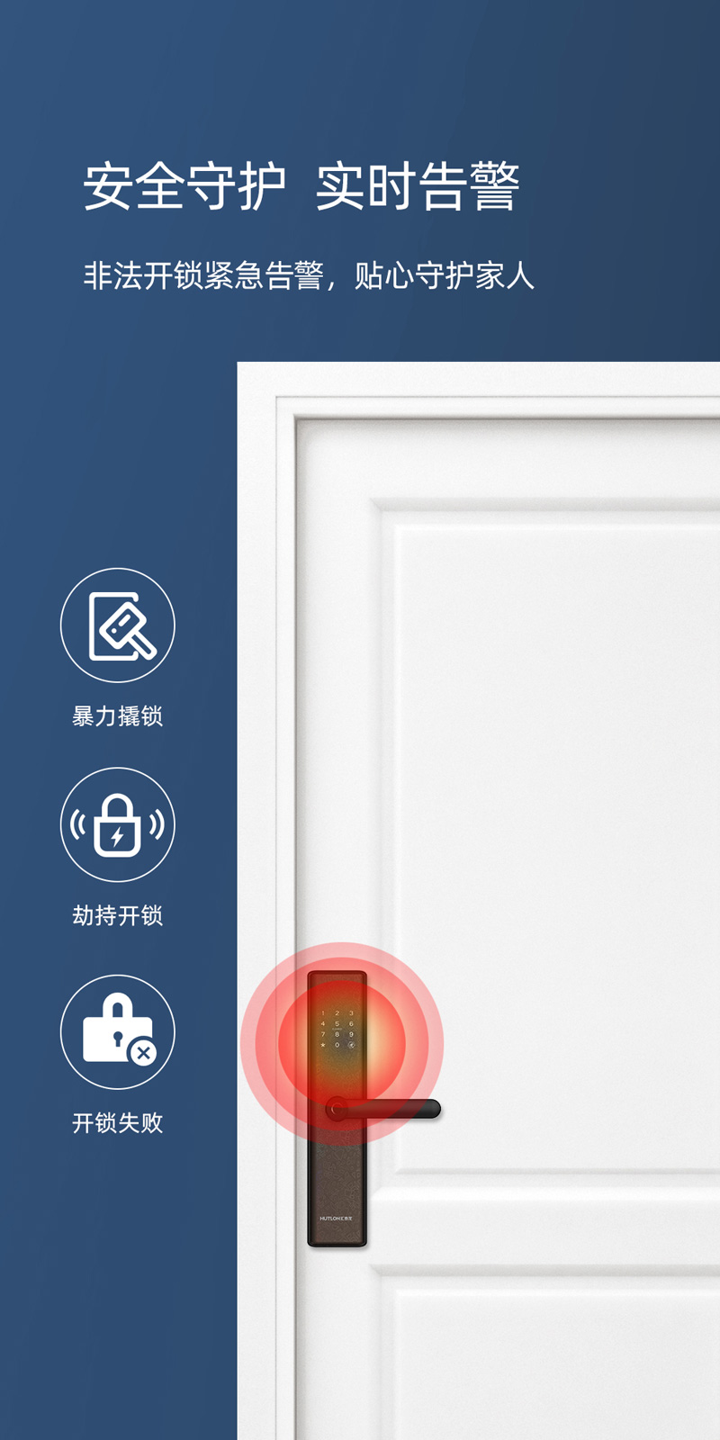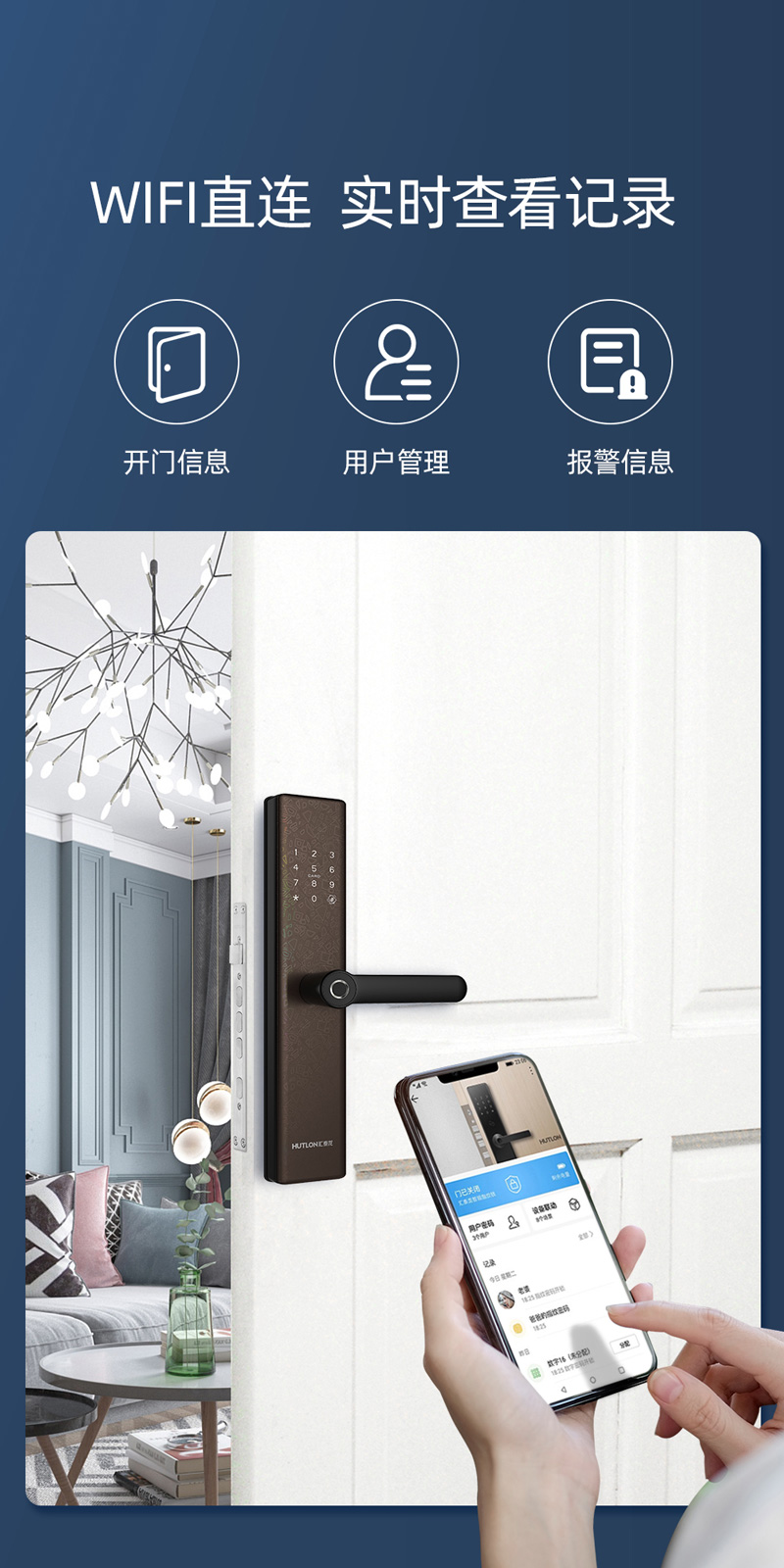 联网功能;APP可实时显示开锁、报警等信息,可远程生成临时密码开锁,门锁用户管理与设置等操作,更加安全、人性化与便捷;