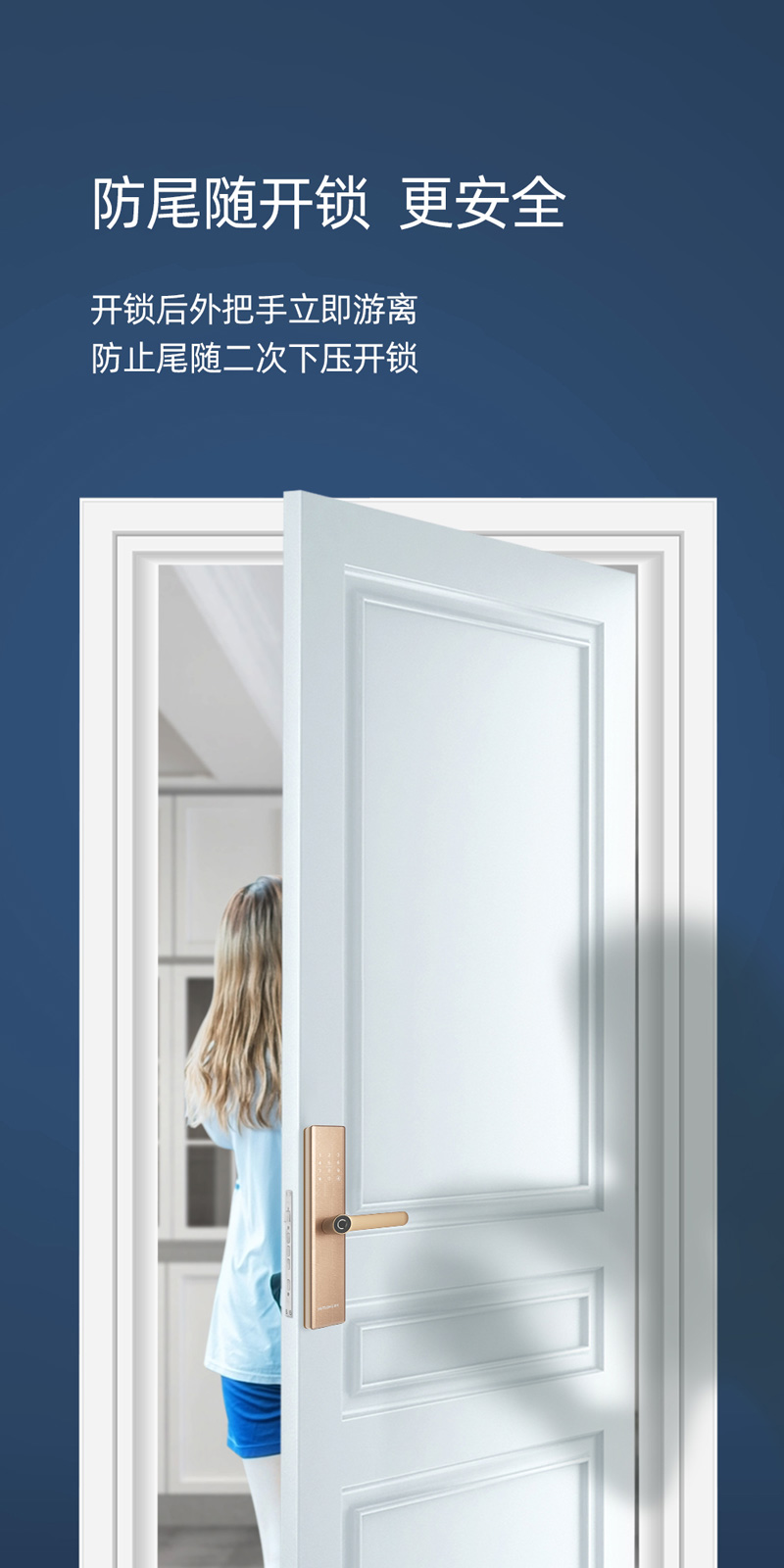 上提实现反锁,把手游离设计,防止暴力破坏,安全可靠;