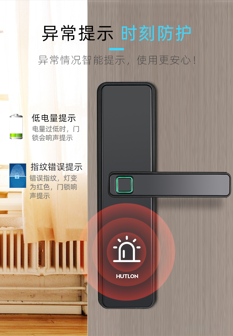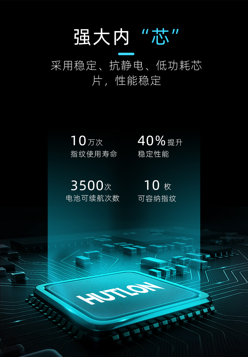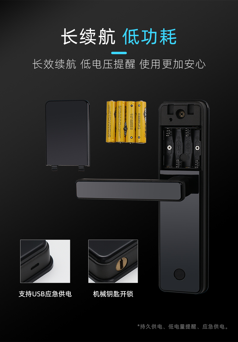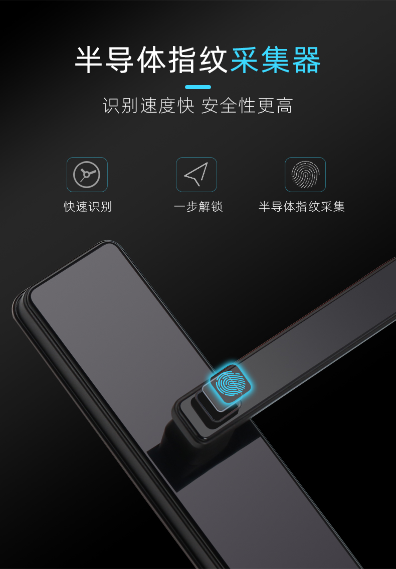 1. 把手指纹设计,采用瑞典FPC生物识别传感器,一体化带灯光提示指纹读头设计,极速识别开锁快人一步;