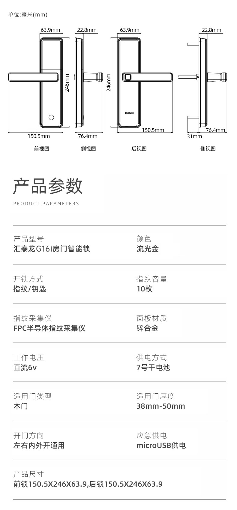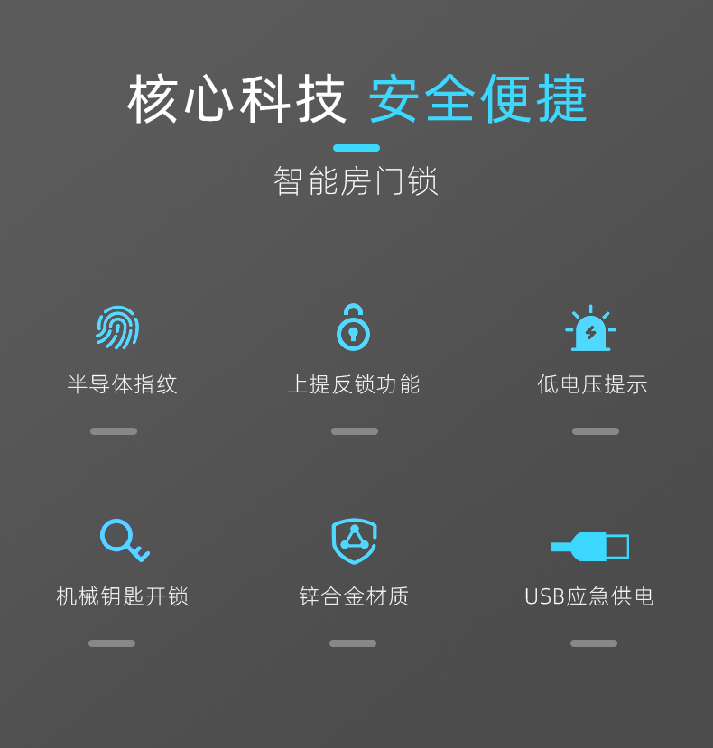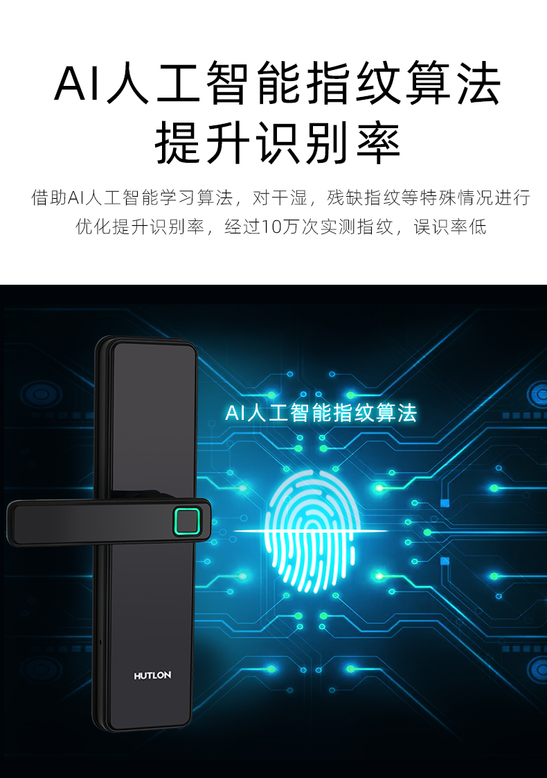 1. 把手指纹设计,采用瑞典FPC生物识别传感器,一体化带灯光提示指纹读头设计,极速识别开锁快人一步;