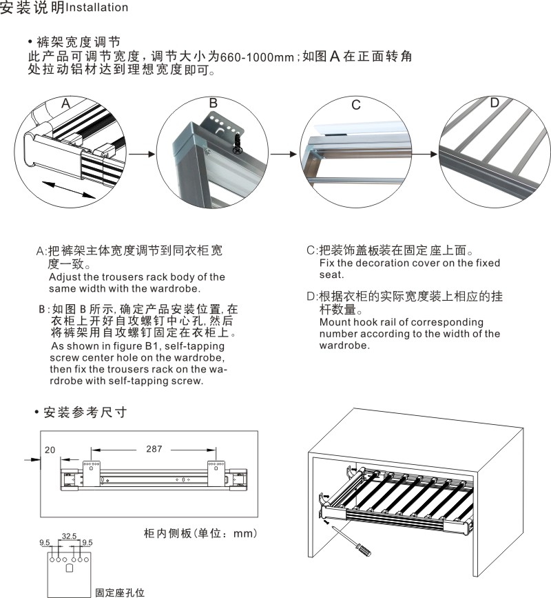 适用衣柜深度:495mm